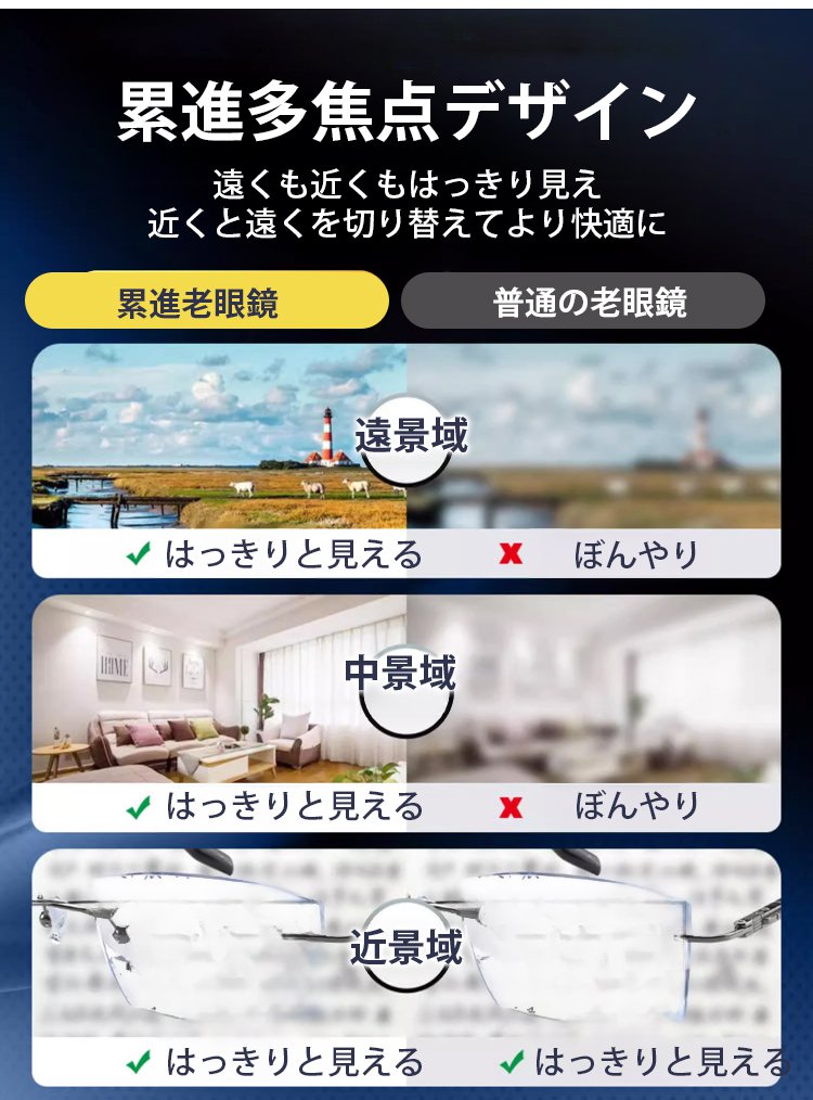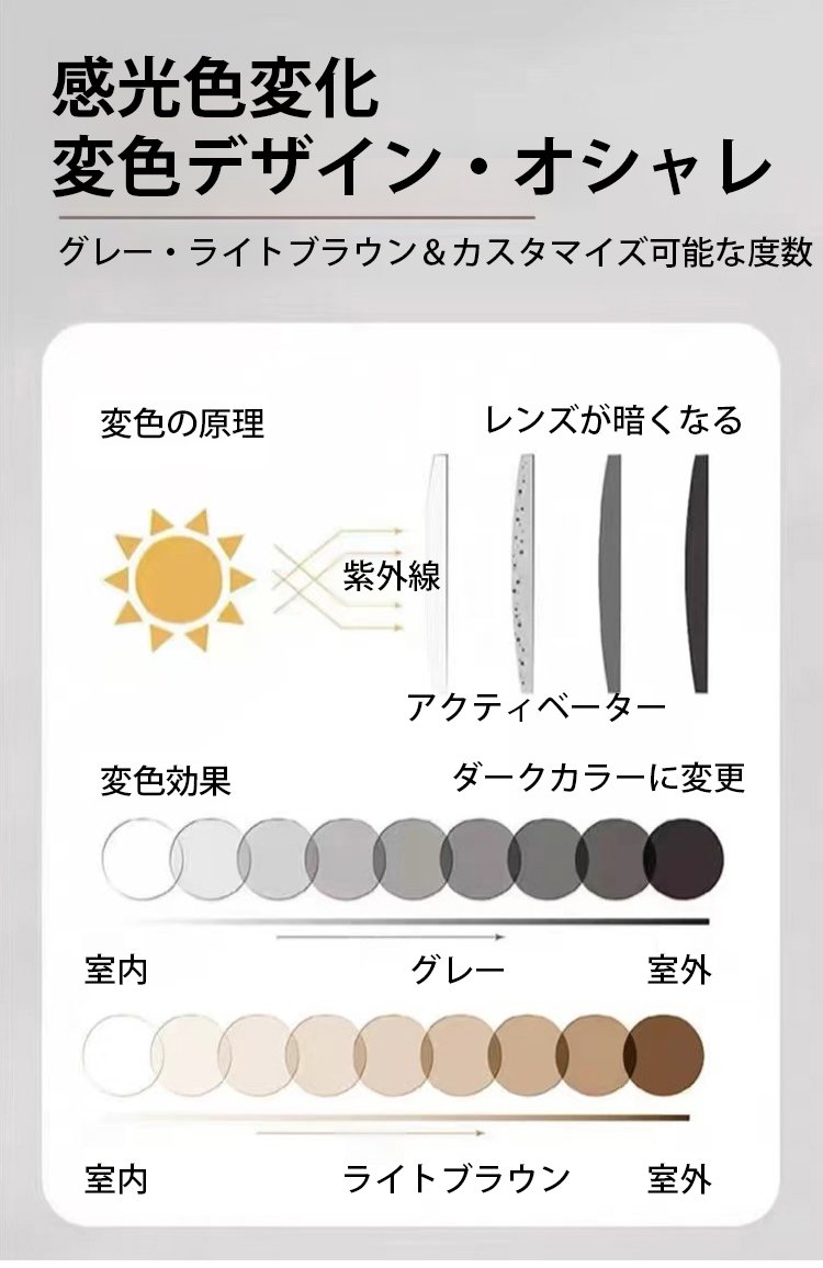 変色ブルーライト防止老眼メガネ