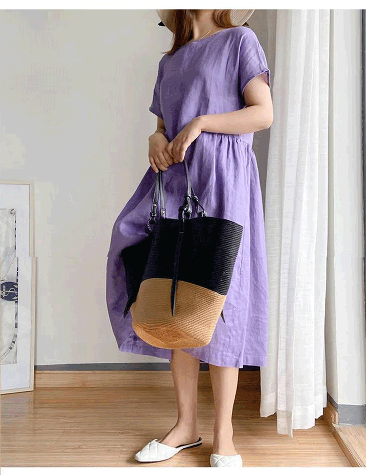 【コットンリネン無地ワンピース】細見え コットンリネン ゆっとり 爽やか 肌に優しい