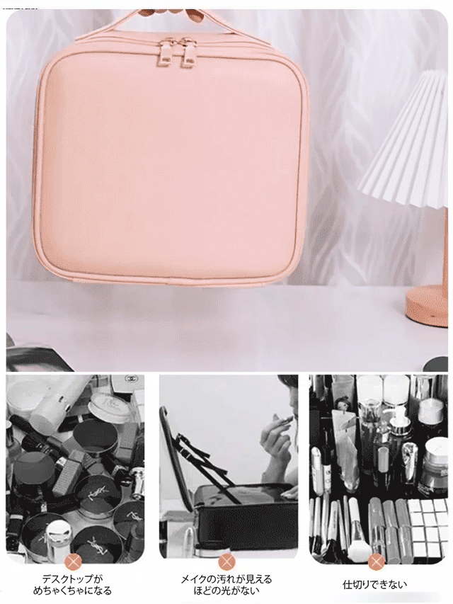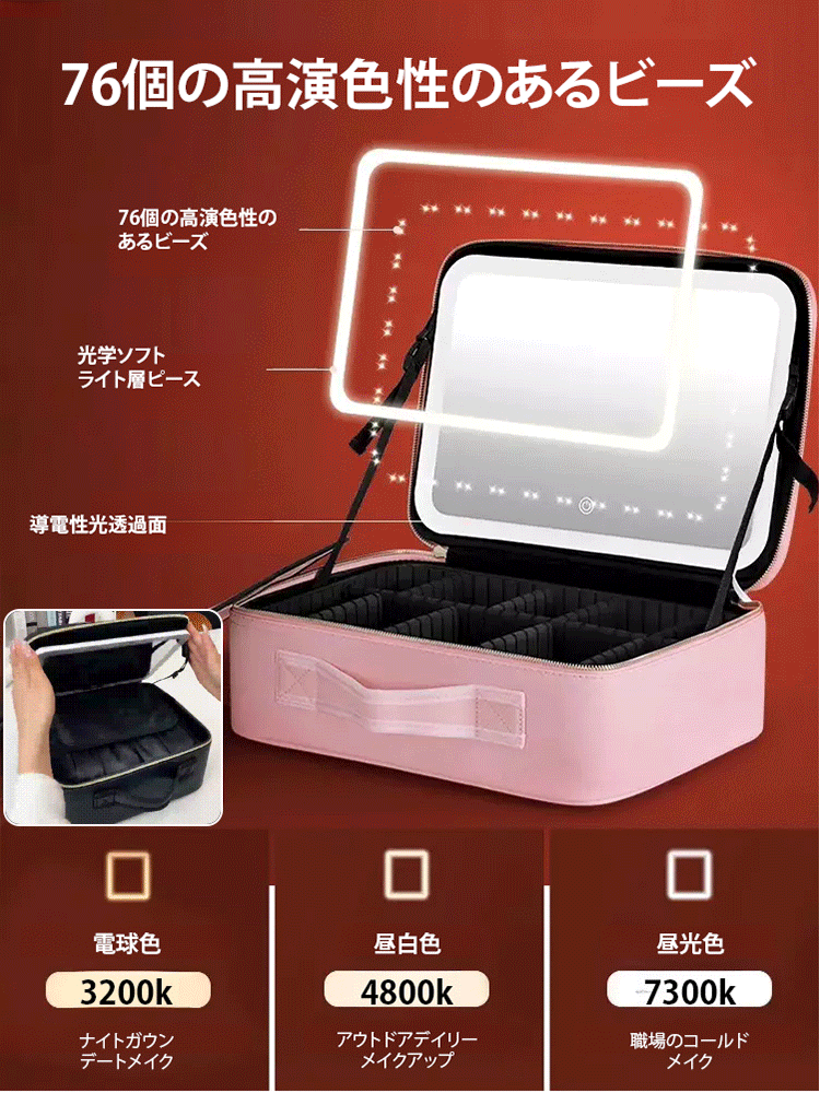 ミラーライト付き化粧ポーチ